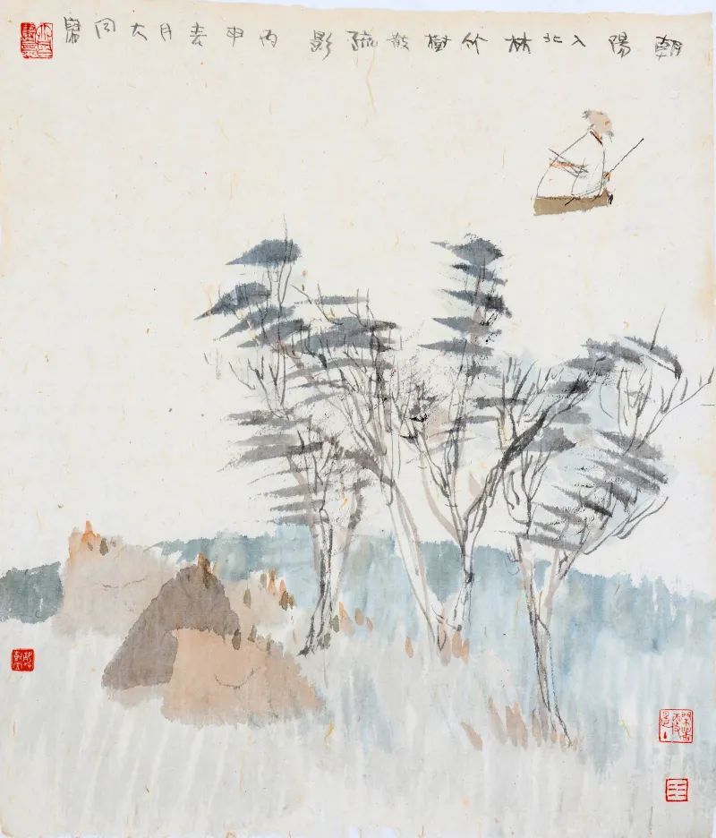 陆大同 朝阳竹树图