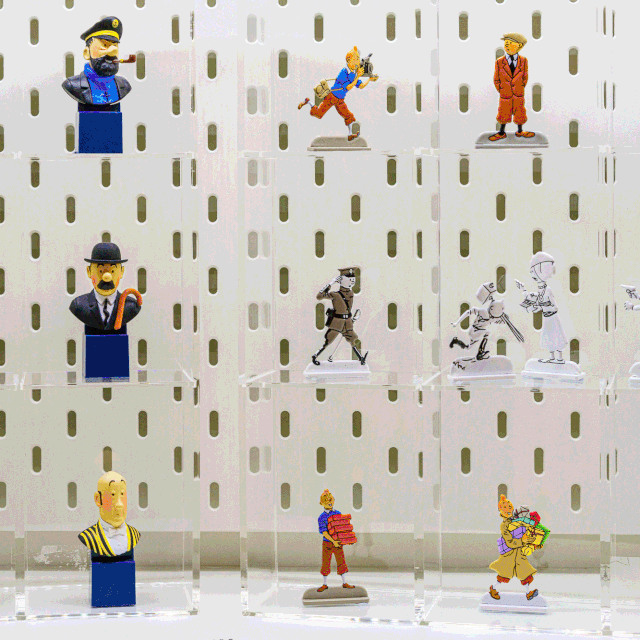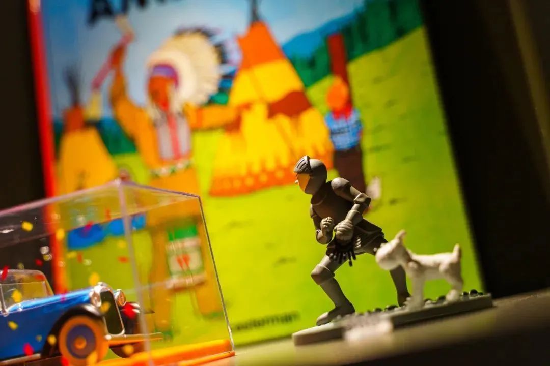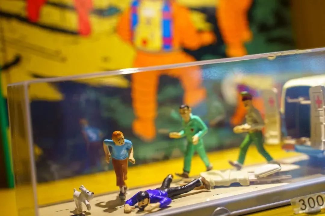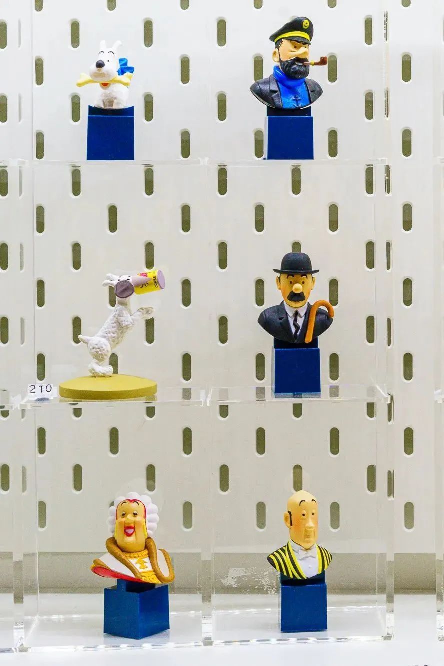 几百件各式各样的丁丁周边,栩栩如生的人物手办仿佛从故事里走出来,丁丁、船长阿道克、向日葵教授、歌唱家卡斯塔菲尔,还有永远伴随丁丁的小狗米卢。