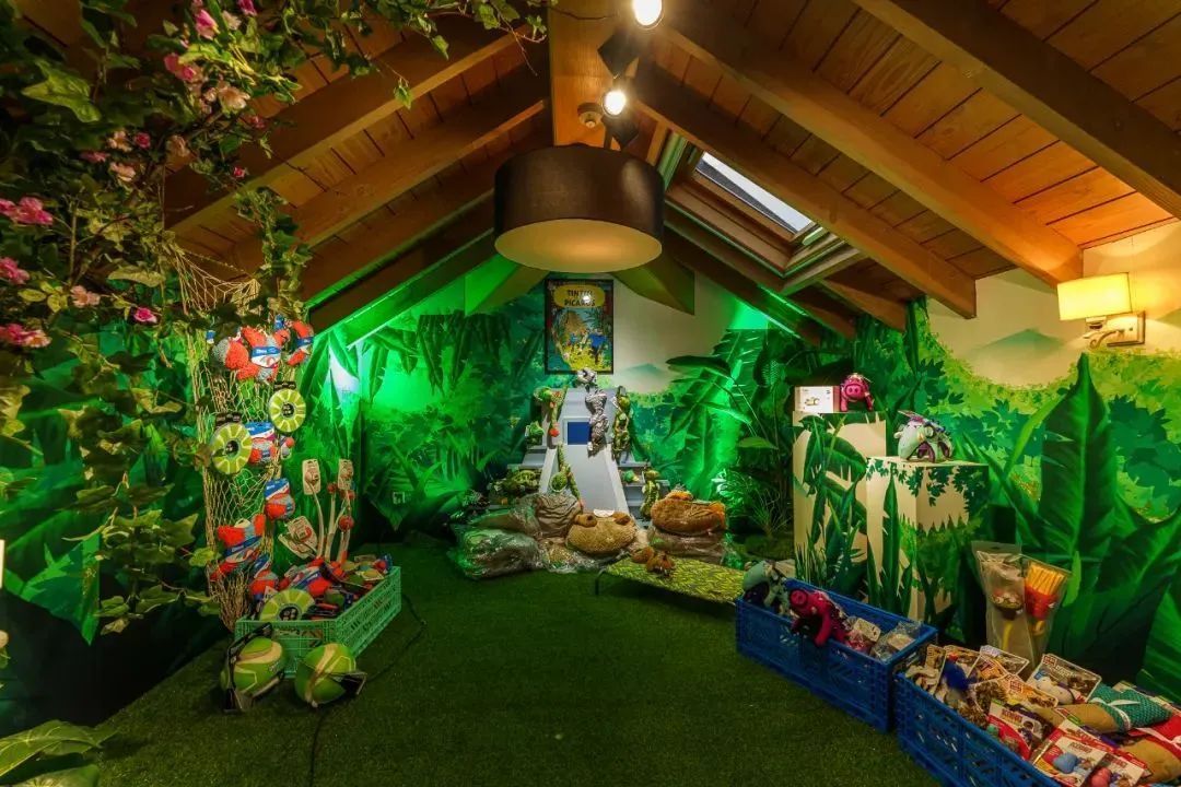 丛林探险区以绿色为主色调,用绿色植被与藤蔓花草打造出雨林之感。
