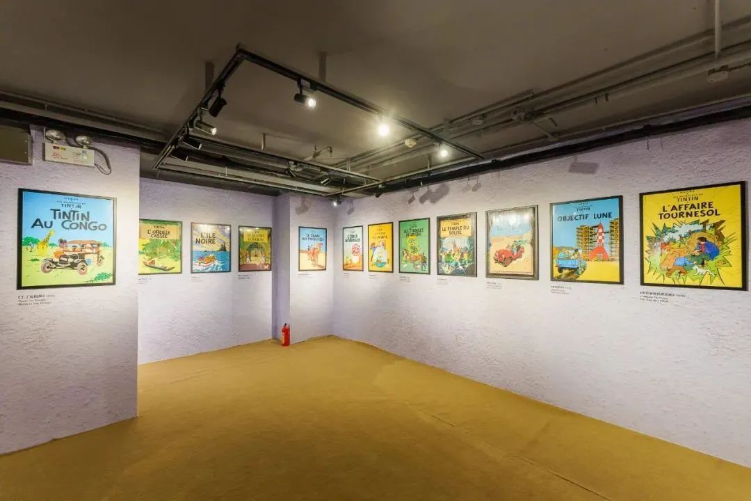 从1931年诞生的《丁丁在刚果》到1976年的《丁丁与丛林战士》,沿着墙走上一圈,记忆像幻灯片似的一帧帧闪现,丁丁的环球历险仿佛又重新经历了一遍。欣赏完这些设计感超强的海报,不妨和它们合张影吧,轻松get画廊风艺术大片!
