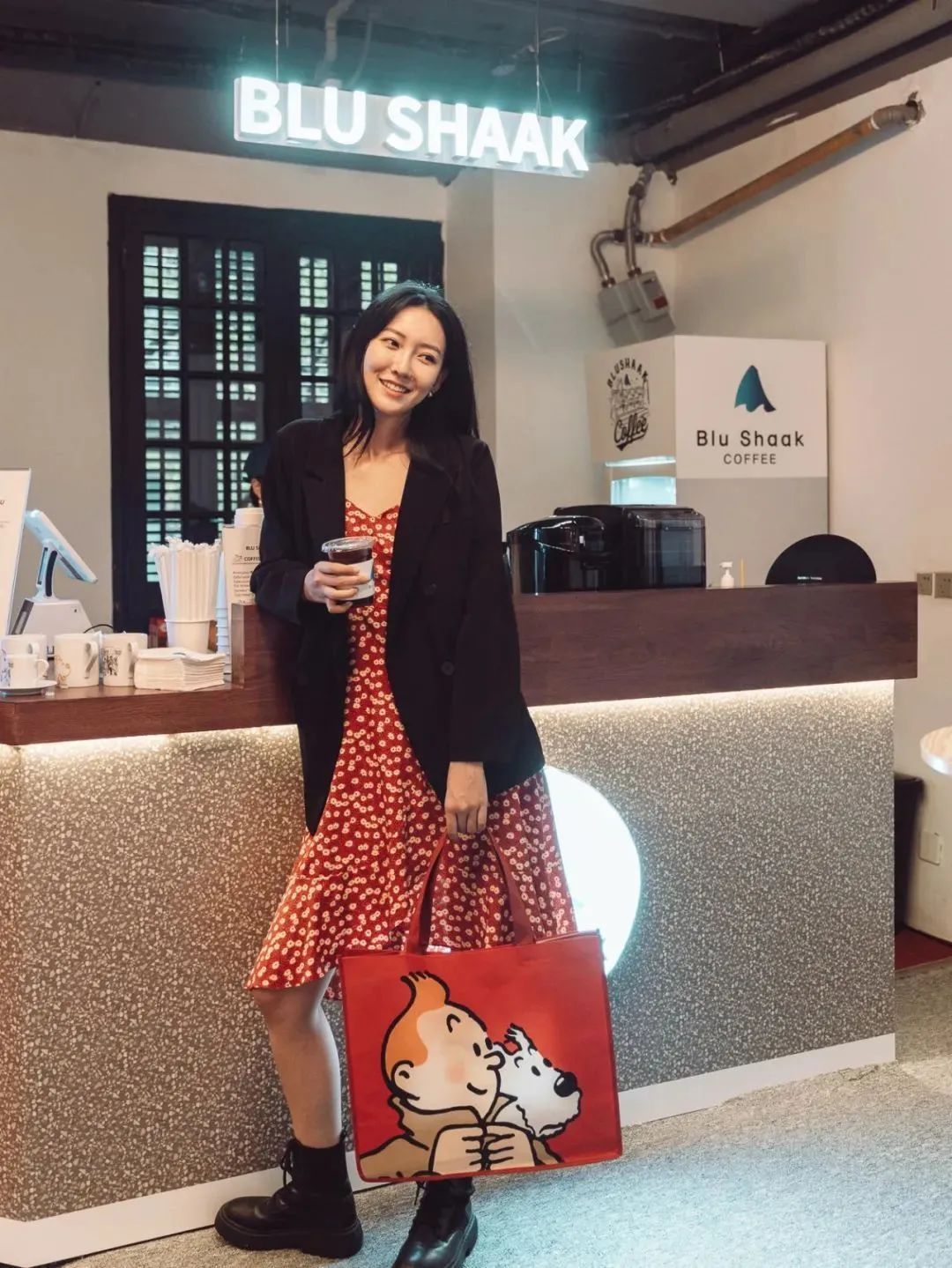 二楼是一个丁丁主题咖啡及书吧,是一个书香和咖啡香兼备的宝藏空间,还自带一个复古室内露台,超级适合小憩。