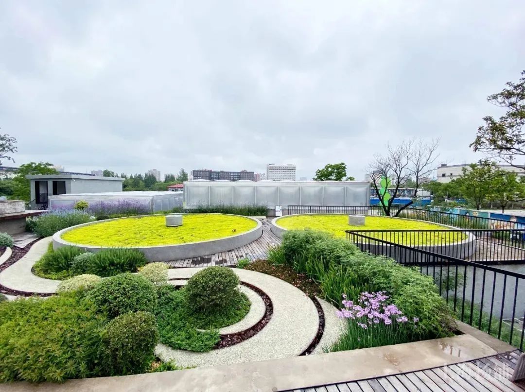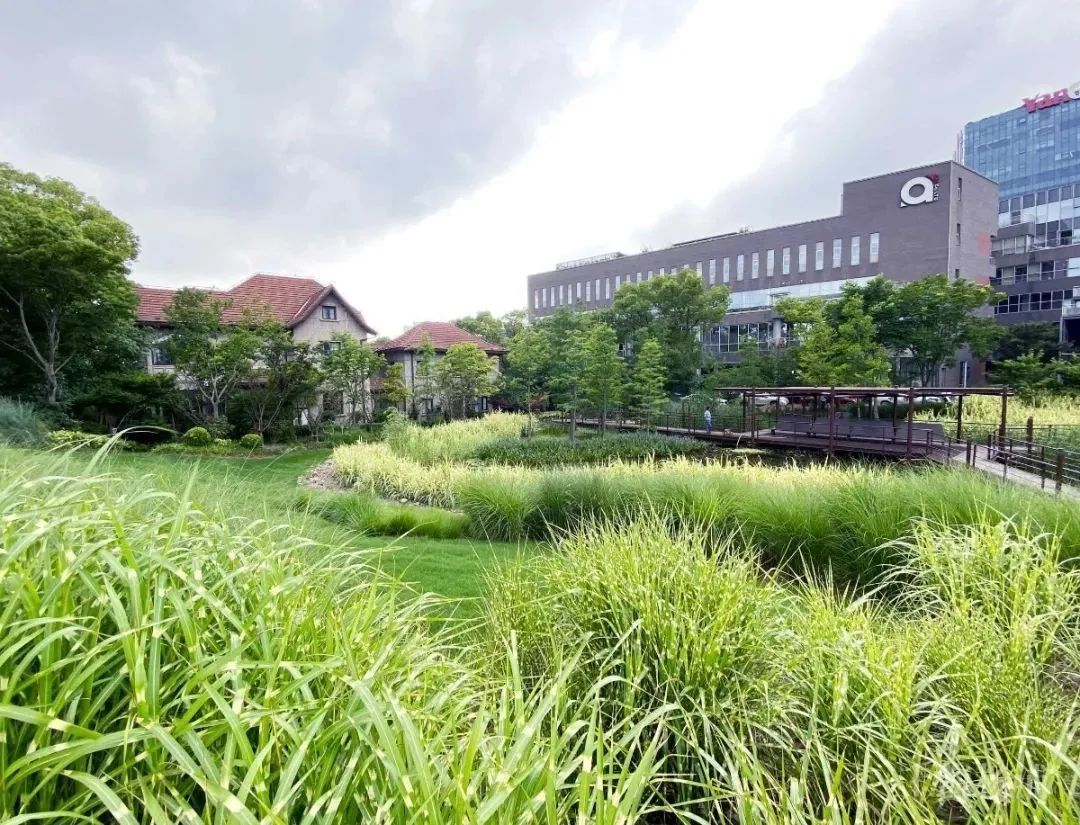 雨水花园原为英商新怡和纱厂内的湿地,现在陆生植物错落有致,水草丰盈,是收集、净化水质,会呼吸的雨水花园。
