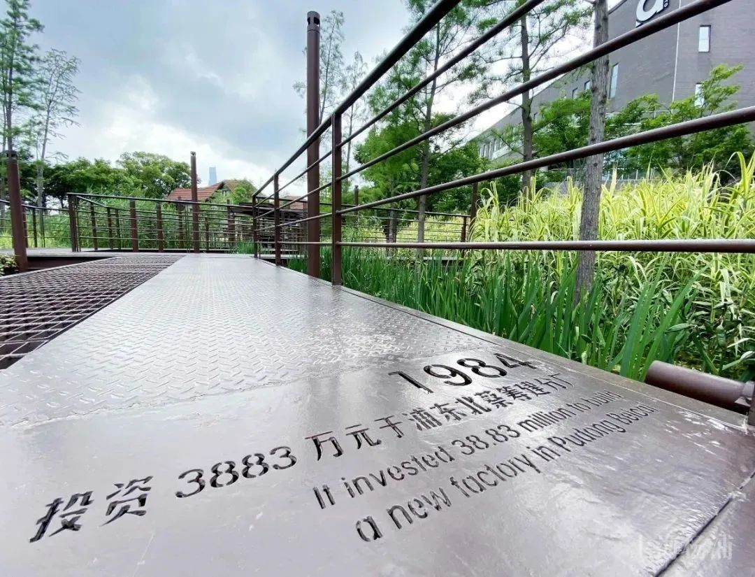 为了迎合杨浦滨江众多老建筑以及周围纱厂、杨树浦水厂的整体风格,雨水花园的栈道全部采用钢结构打造,与滨江岸线总体设计相呼应。