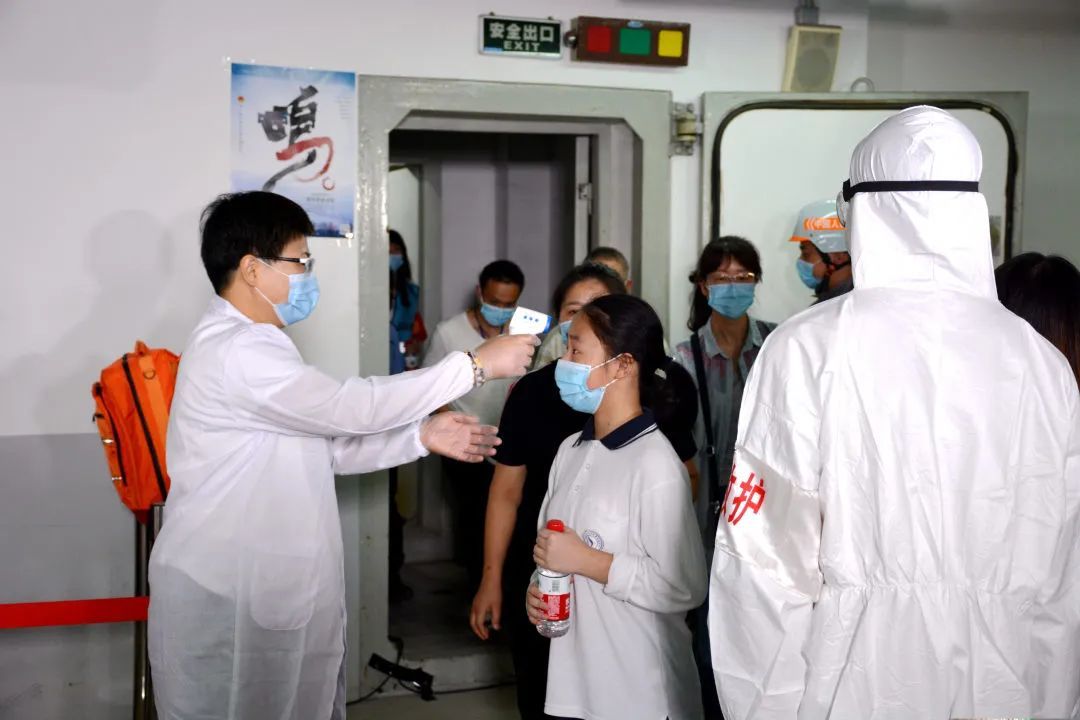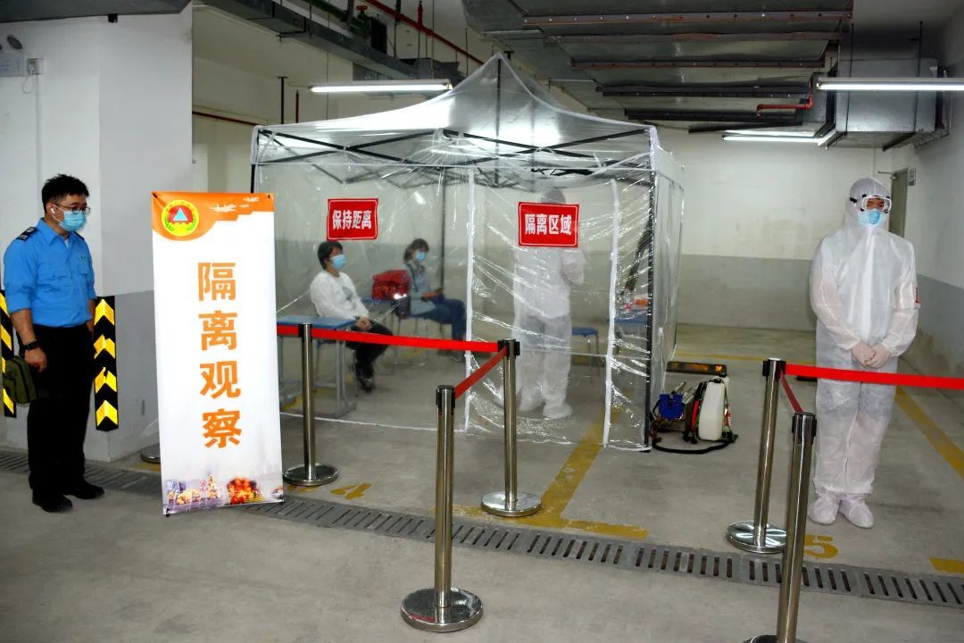 工作人员则负责检测民防工程内空气情况,保障人员安全。同时,由于目前仍处于常态化疫情防控下的特殊时期,应急避难场所内还设置了体温检测环节及隔离观察点。