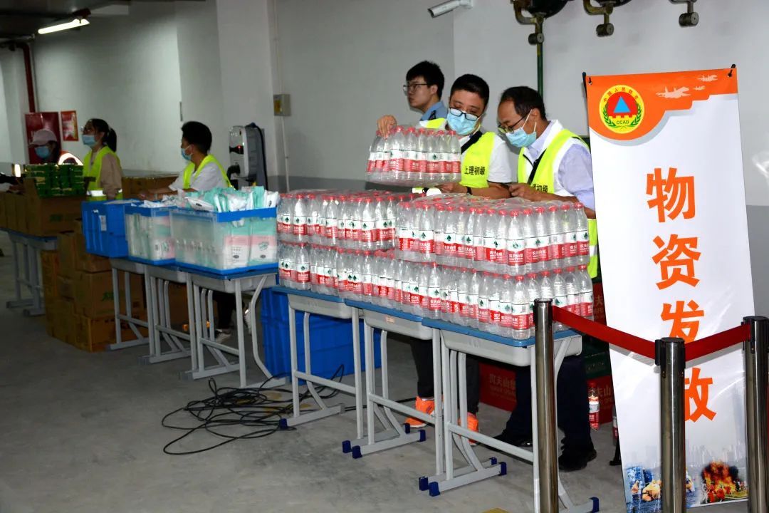 确认所有人员安全撤离到民防工程后,工作人员迅速关上民防工程密闭门,居民、学生在民防工程内有序开展心理干预、医疗救护、物资发放等工作。在应急掩蔽场所内,每位前来避难的师生和社区居民,都能得到一份应急生活物资保障,包括水、毛巾和饼干。
