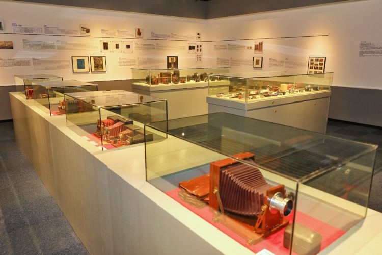 登上二楼,观众可参观摄影器材与工艺技术发展史展区。这一展示空间梳理了自1826年全世界第一张照片问世,到胶片时代进入全盛期,这百余年间出现过的主要成像和转印工艺以及相机种类。