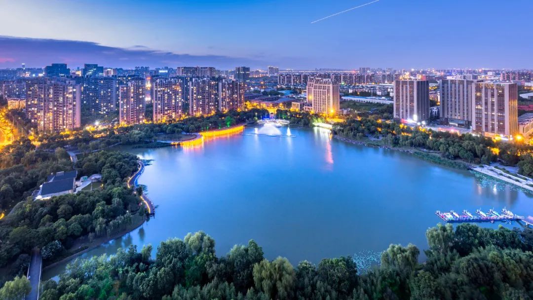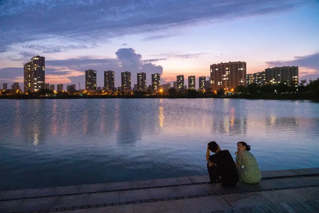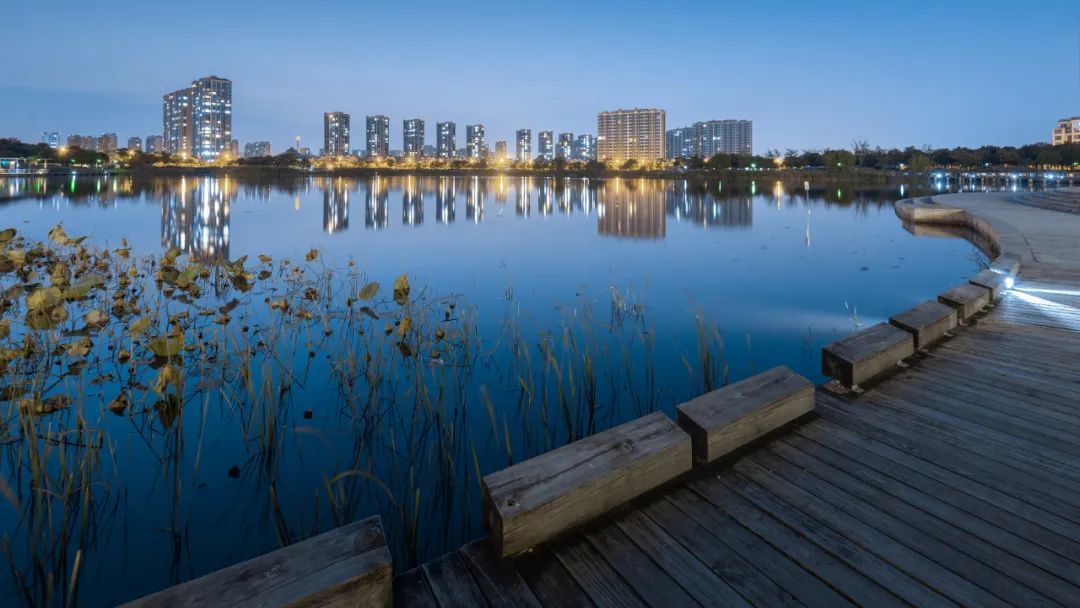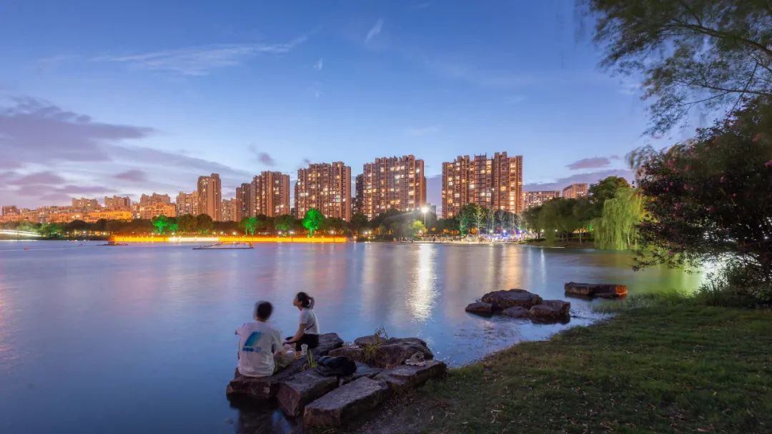 晴朗的夜晚,留云湖和银翔湖一片澄澈。湖边漫步,最好是牵手,穿过小桥,走过林荫道,听风踮起脚悄悄溜过湖边的树梢。看三三两两散步的人、跑步的人,看亲水平台上孩子们奔跑嬉闹,看湖心的水幕映衬着傍晚的天空,炫出五彩的颜色。