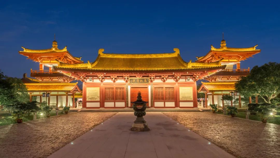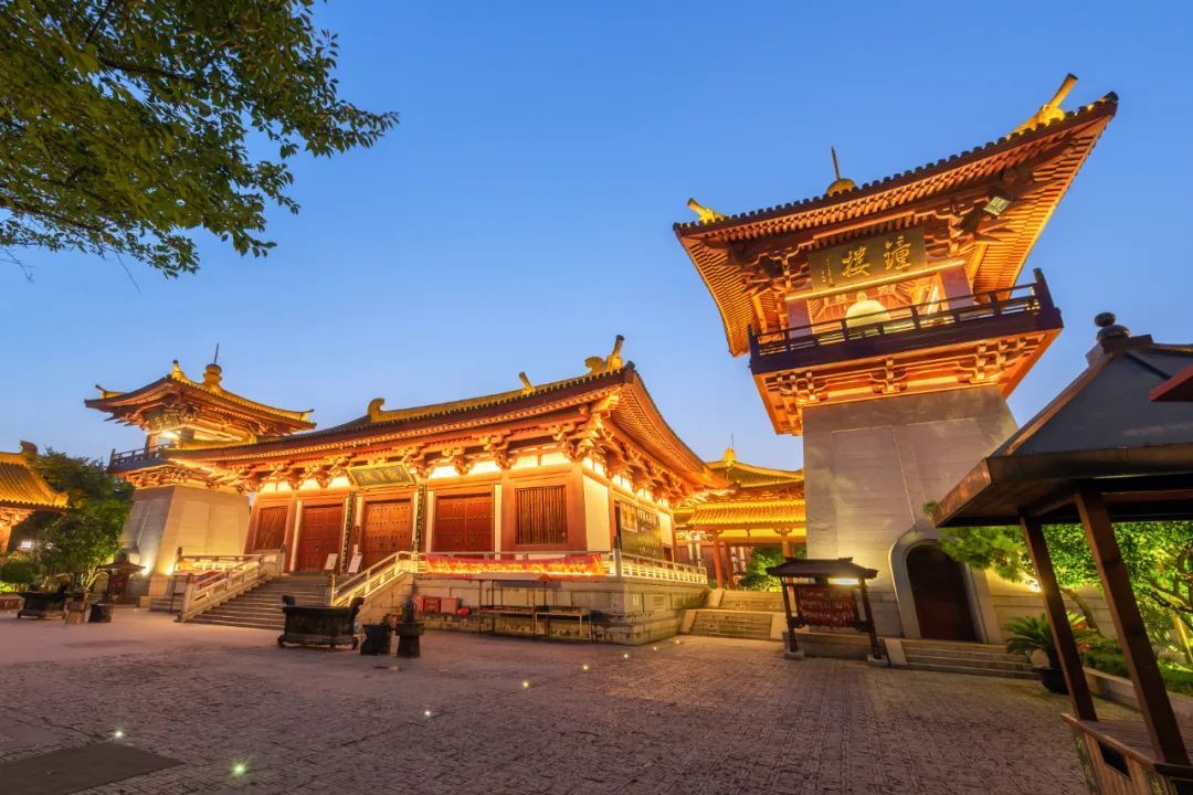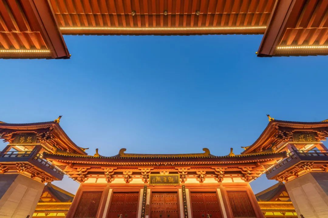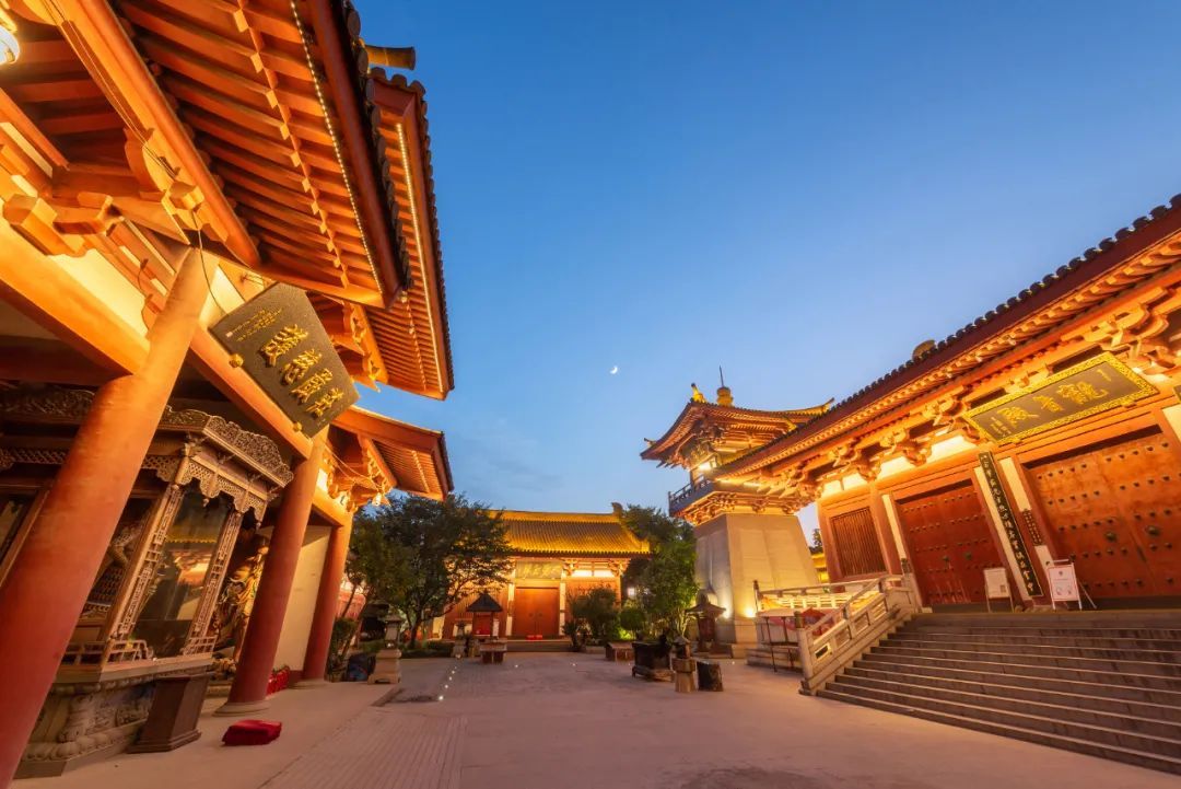 云翔寺就更加静谧了。一线月牙悬在大雄宝殿上空,寂寂的月色里,若不是钟鼓楼上的闪烁的灯带,难免会让人有一种穿越时空的错觉,曾经一双白鹤在这里展翅南飞的时候,是否也流连过这样的一片夜色?