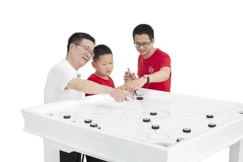 3、比赛采用1颗母子,17颗小子。小子四个一排放呈正方型,置四排上面再叠加一子,放于中心圈内。任何一方只要打满9颗小子即算获胜一局;