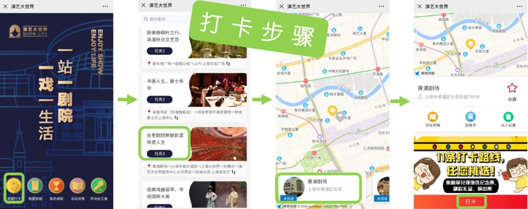 打卡任务:该点位为定位打卡,到达黄浦剧场后,点击“打卡”即可打卡成功(记得打卡手机定位哦~)