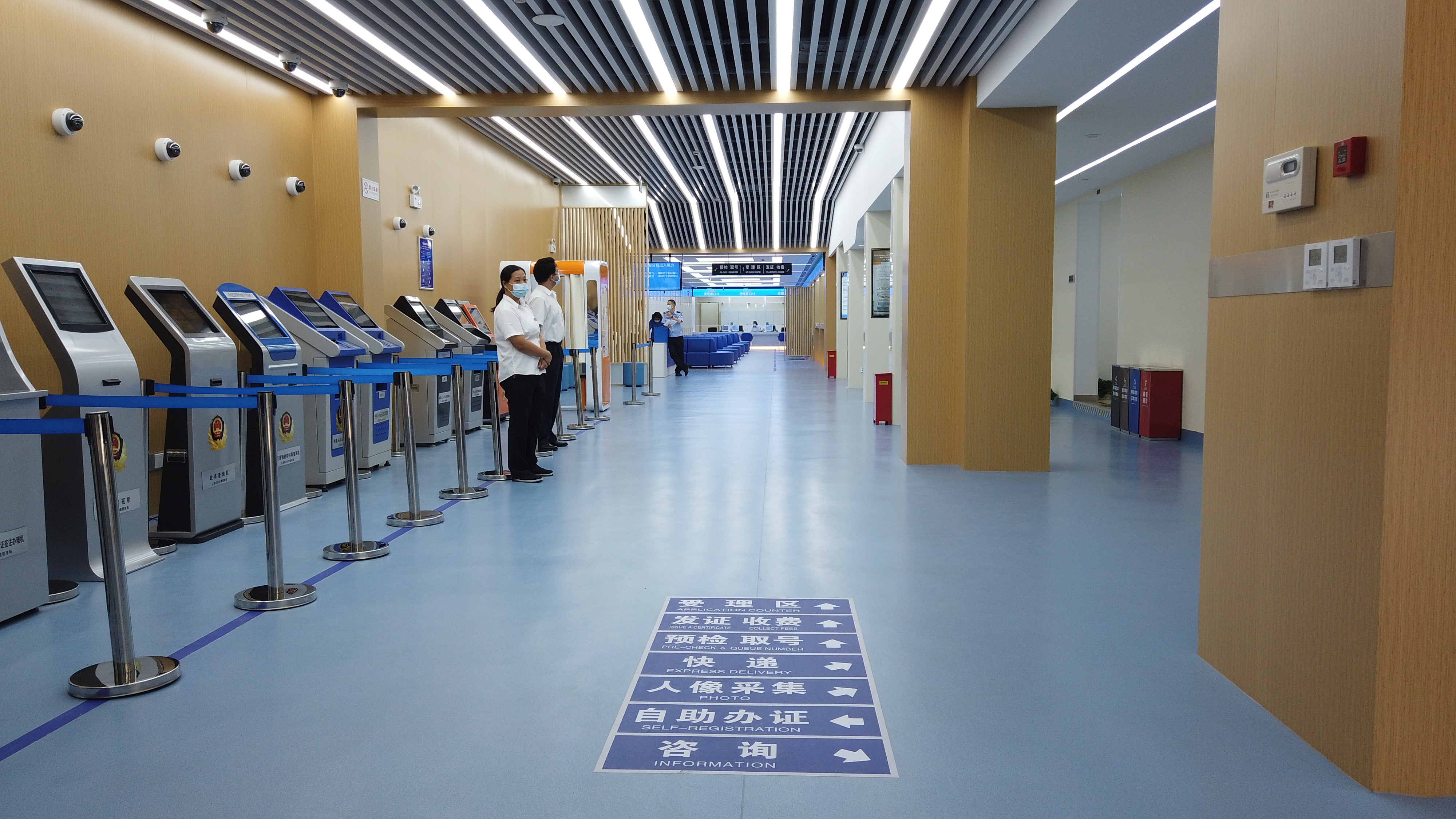 走进新大厅,自助办证机一字排开标识清晰,两个偌大的便民等候区宽敞明亮,由于是新址运营的第一天,前来办理业务的市民并不多,所以工作人员能够提供一对一的流程引导,办事体验不错。在入口处的咨询台,工作人员会按照不同的业务类别为办证市民提供引导服务。普陀公安分局出入境管理办公室主任黄薇说,“通过自助机办理的业务,我们会引导他们到自助区域办理,需要通过人工柜台办理的业务,我们会引导他们前往自助领号排队,这样也可以从一定程度上减少人员聚集。”