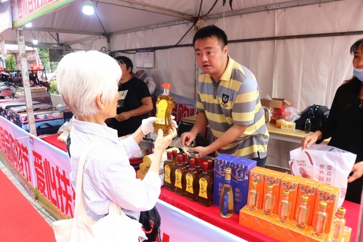 四川甘孜州雪森美好食品有限公司的摊位上,核桃油、花椒油、核桃挂面等产品一字摆开,每每有消费者驻足,负责人陈淑华总是一遍遍热情地介绍核桃油的营养价值。这一次,团队专程从四川来到上海浦东,共带来83瓶核桃油,还专门给到上海消费者买一送一的大折扣。陈淑华告诉记者,活动首日成交5单,虽然数量不多,但每一笔都意味着有一个家庭有机会品尝到核桃油,核桃油市场规模还比较小,展销会是扩大知晓度的上佳平台。据悉,核桃油富含欧米珈-3脂肪酸、维生素E等营养元素,对生长发育期的婴儿尤其有益,因此陈淑华也在积极寻找月子中心等渠道,希望建立更加稳固的销售关系。