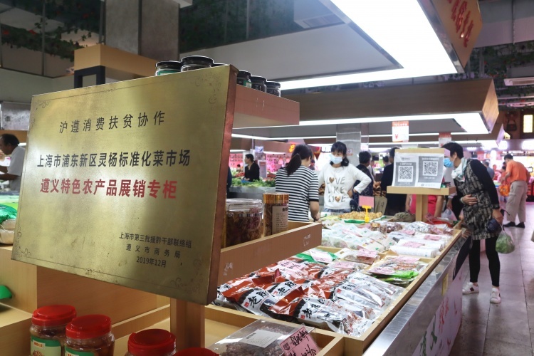 今年“五五购物节”期间,消费扶贫上海遵义专柜也首次进入上海大卖场渠道,首批精选40余款遵义扶贫商品在大润发在沪的5个主力卖场杨浦店、闸北店、大宁店、泗泾店、康桥店进行销售。此外,还通过市场建设“消费扶贫上海遵义专柜”,分别位于浦东双季市场、长宁龙安菜场、奉浦大桥大嘴生鲜菜场、浦东灵杨菜场以及曹安公路上的上海遵义馆。