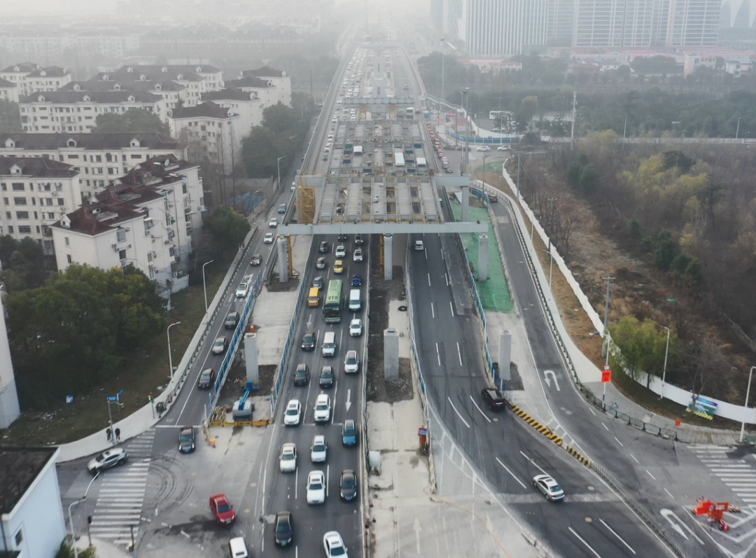 利用这一管理平台,项目部进行交通组织与流量分析模拟,确定拥堵疏导重点区域,提出全线不封交施工,实现新老高架“空中”翻交方案,大幅度减少施工对周边交通影响;对复杂节点进行施工模拟,未行先试,优化施工筹划,重点解决了川杨河桥交通组织与施工、全线老桥顶升、地铁上方钢箱梁吊装等难题。