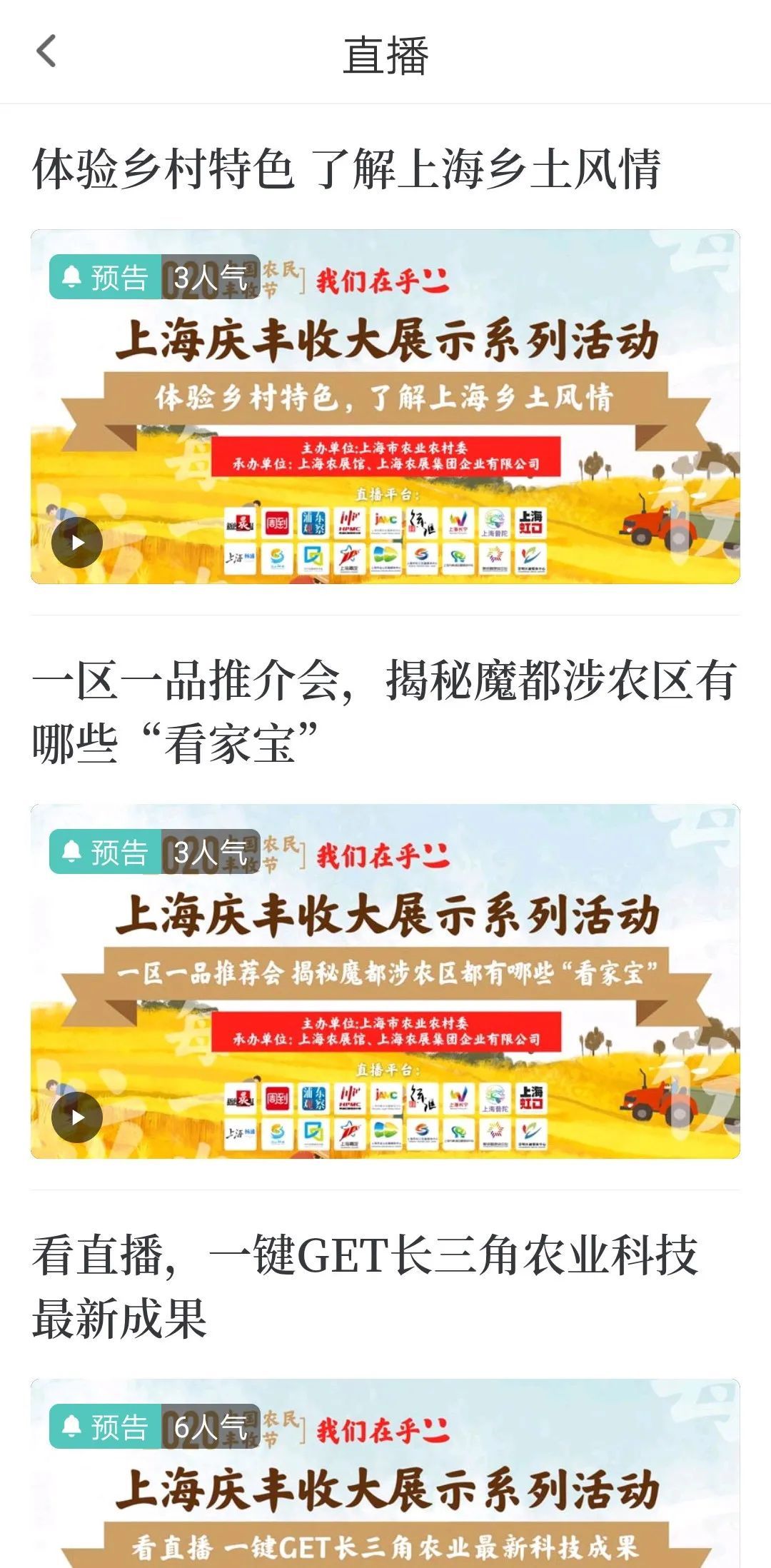 你知道上海都有哪些特色农产品吗?上海乡村又是怎样一片风貌?上海2020中国农民丰收节上海庆丰收大展示系列活动启动啦!9月22日10:00,来直播间,为你展现上海乡村振兴建设的成果,敬请关注。