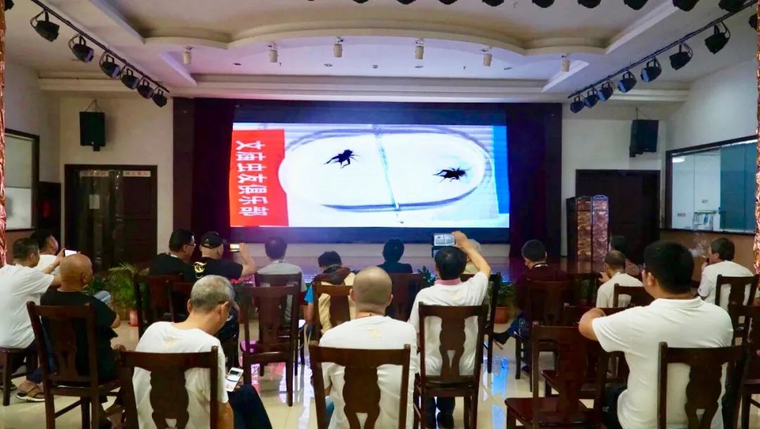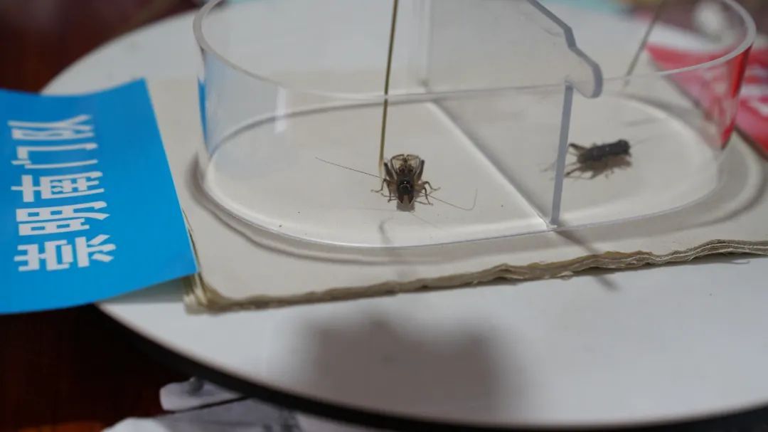 比赛开始,双方选手挑选各自的蟋蟀放在盒子里,然后拿着草芡逗引蟋蟀至热身时,裁判将隔板拿开,两只蟋蟀捉对厮杀。