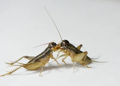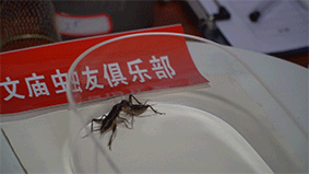 比赛中,两只蟋蟀像斗士一般,先是竖须振翅动股,然后双方展开进攻,撕咬钳制,纠缠一起,直至一方仰头长叫,另一方俯伏逃跑。