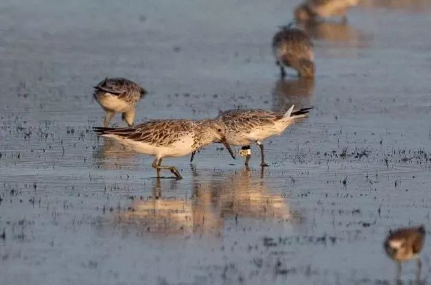 在崇明东滩的环志过程中,还有来自不同国家和地区的环志鸟被回收。目前回收鸟中超过一半为大滨鹬,而且70%的回收鸟是在西北澳洲被环志的,表明崇明东滩与西北澳洲在迁徙涉禽的保护上有非常紧密的联系。崇明东滩环志研究获得的数据为东亚—澳大利西亚迁徙涉禽的迁徙研究提供了宝贵资料。