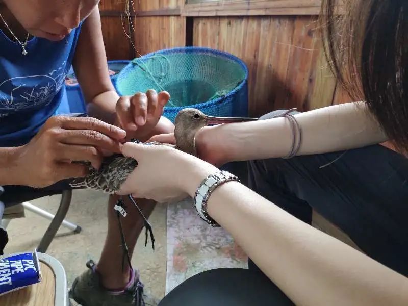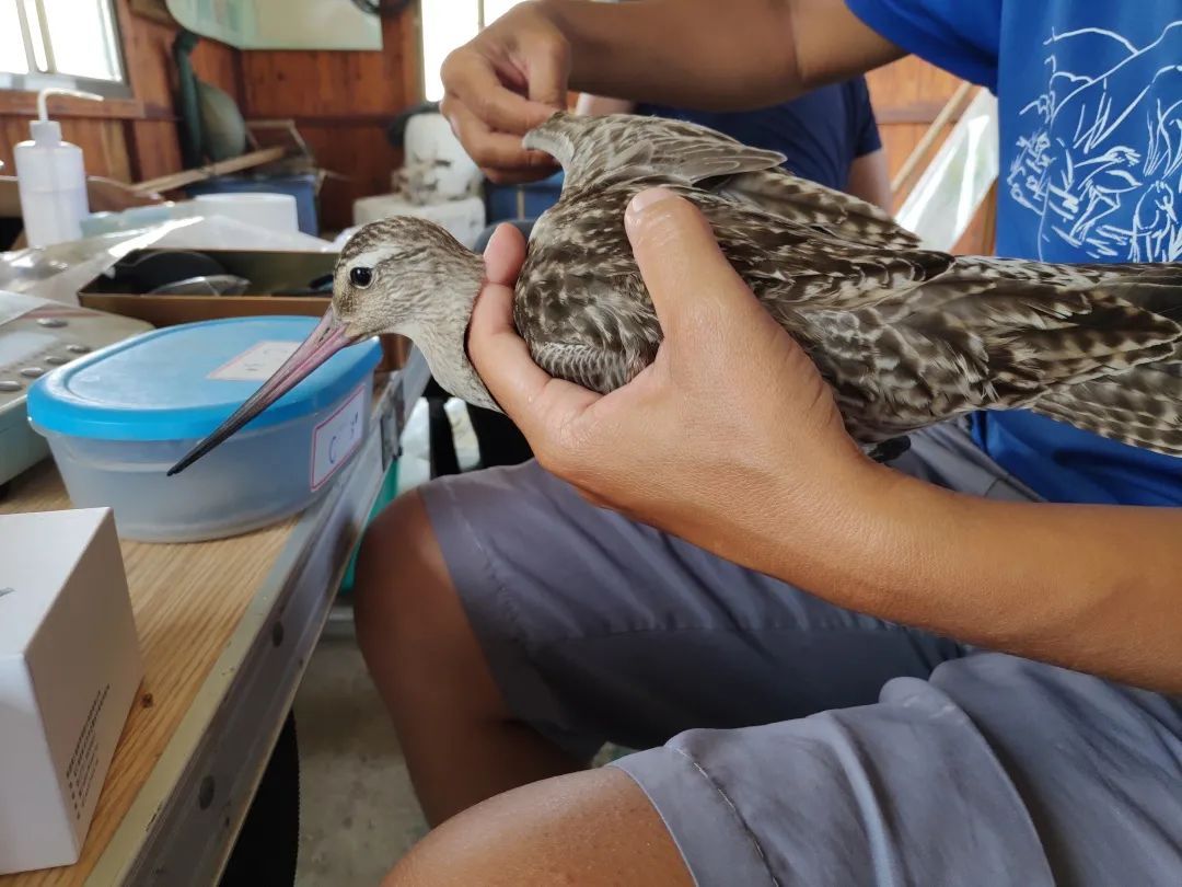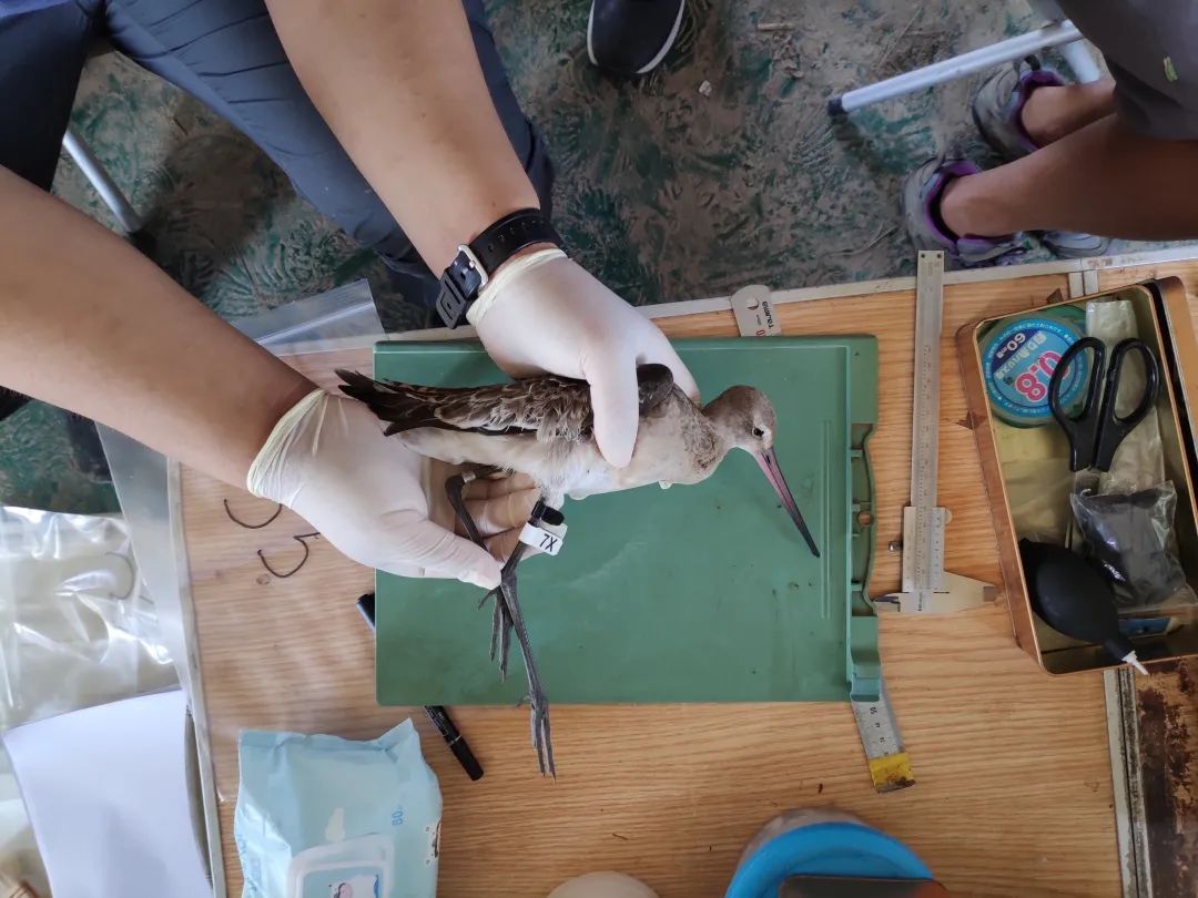 今年秋季,崇明东滩环志采样涉及的候鸟包括黑尾塍鹬、斑尾塍鹬、红颈滨鹬和翘嘴鹬等,环志工作组挑选状态良好、体型较大的黑尾塍鹬和斑尾塍鹬个体安装了GPS定位装置,以跟踪其迁徙路线,为进一步开展迁徙候鸟研究采集数据。