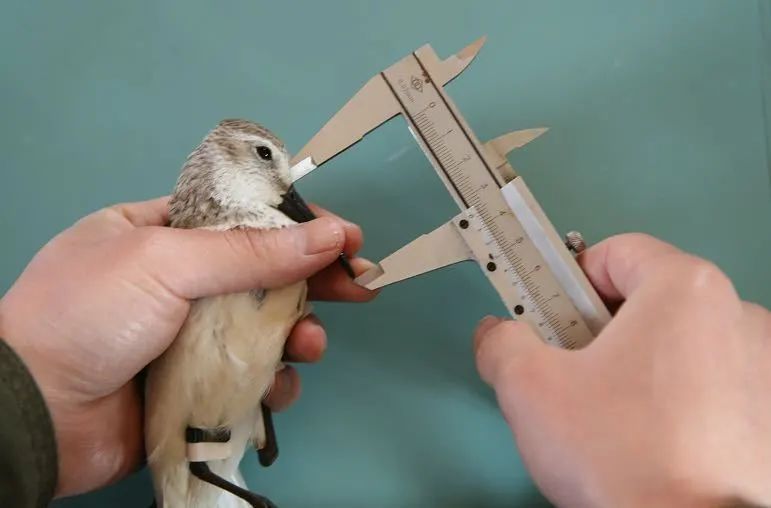 对鸟的体长、体重以及其他部位进行测量,将数据记录下来。