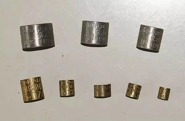 把合金材料制成的鸟环安装在鸟腿部,上面刻有国家、机构、通信地址和鸟环编号等信息。