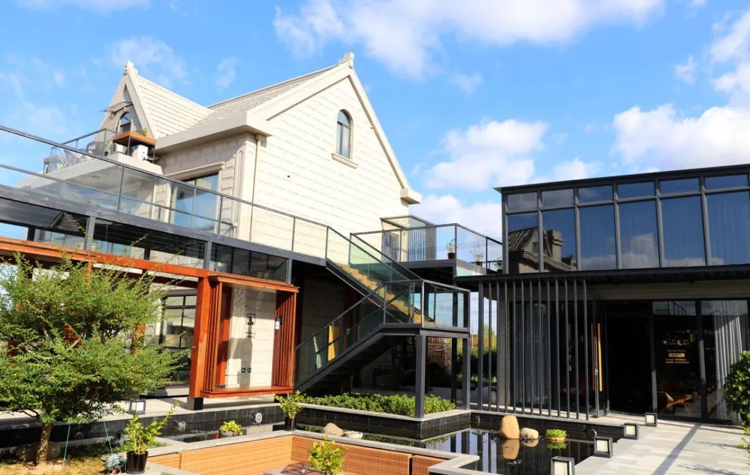 "黑森林"民宿,总共有6间,4个大床房,2个标房。院中仿佛如诗句,苔痕上阶绿,草色入帘青,据统计,户外绿化覆盖率达到35%以上。这家民宿有山有水,一条环绕庭院和房屋的湖在前后院内互相流通,山水相间之景在都市中是前所未有的。伴随着自家绿色农场,农家乐也是一种不错的享受。