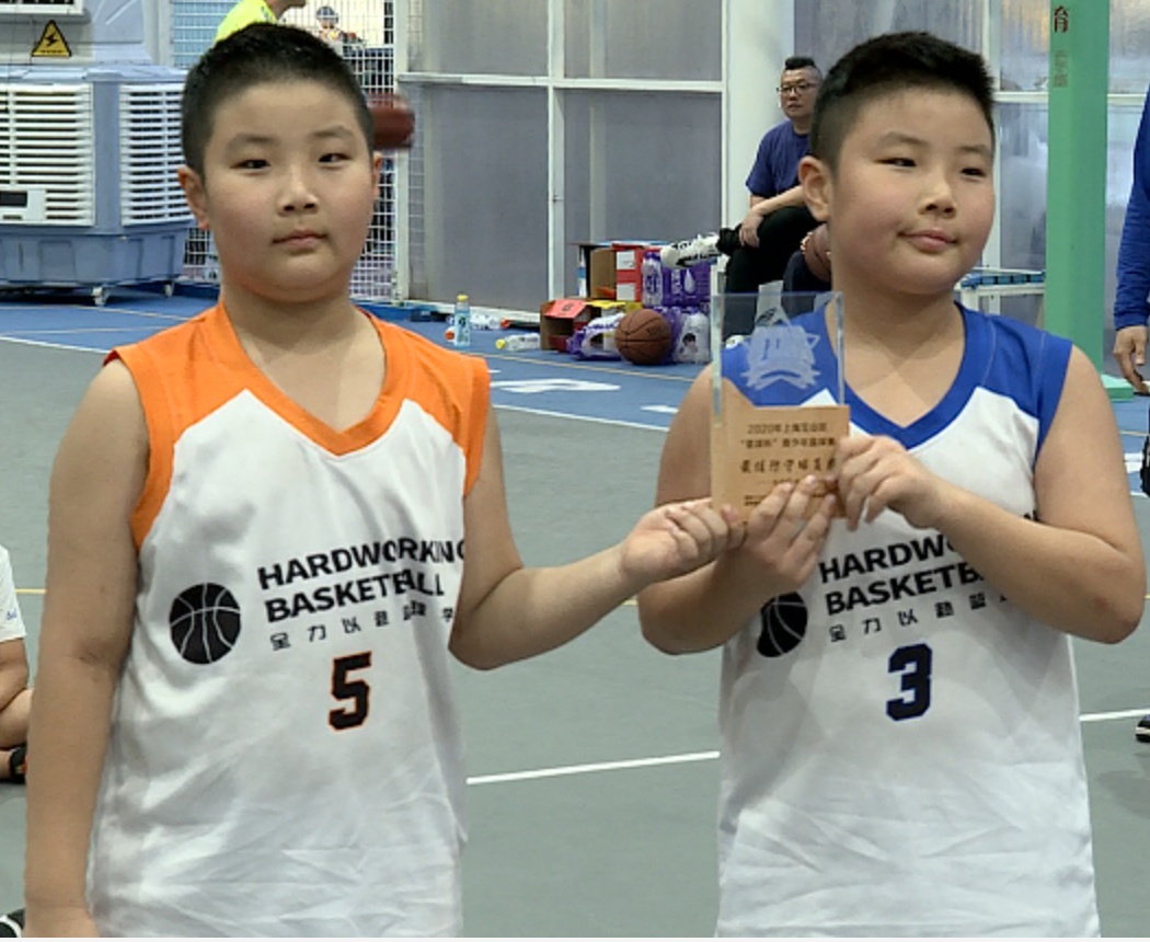 来自全力以赴篮球学院的邵子春、邵子靖同学荣获宝山区“星球杯”青少年篮球赛最佳防守球员奖杯。