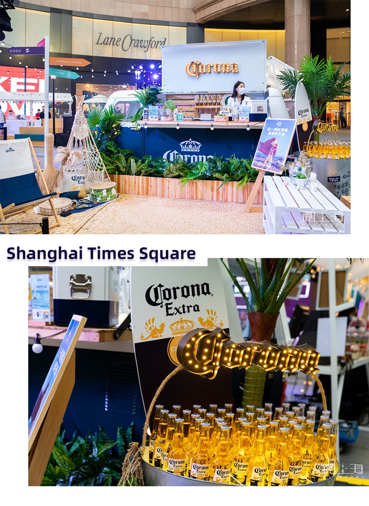 科罗娜的啤酒摊位一下子把人们带入了热带的墨西哥风情之中。