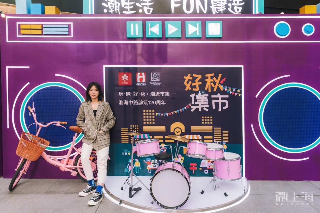“潮生活,FUN肆造”,超大的复古音箱、粉色的老式自行车还有帅气的架子鼓,可拍出复古Disco范儿!
