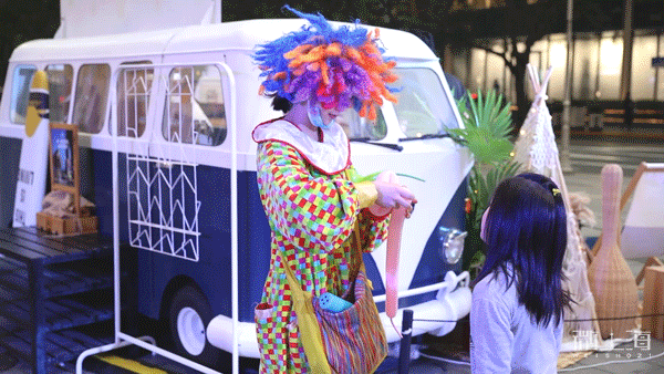 集市里还有小丑给小朋友们制作气球玩具,宝爸宝妈们可以带小朋友们来玩~