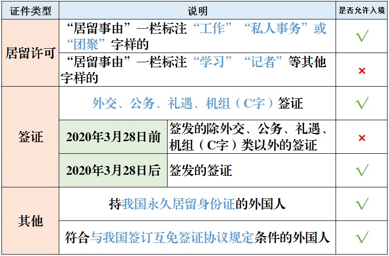 只要所持是3月28日以后签发的签证,就可以入境,不受签证类型限制。