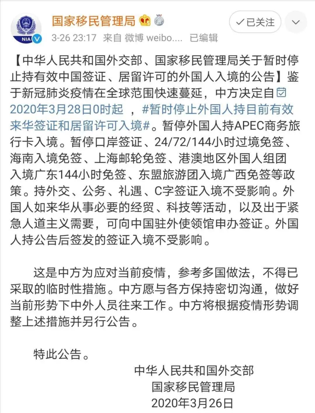 那么,9月28日后外国人到底可以持哪些证件入境中国?