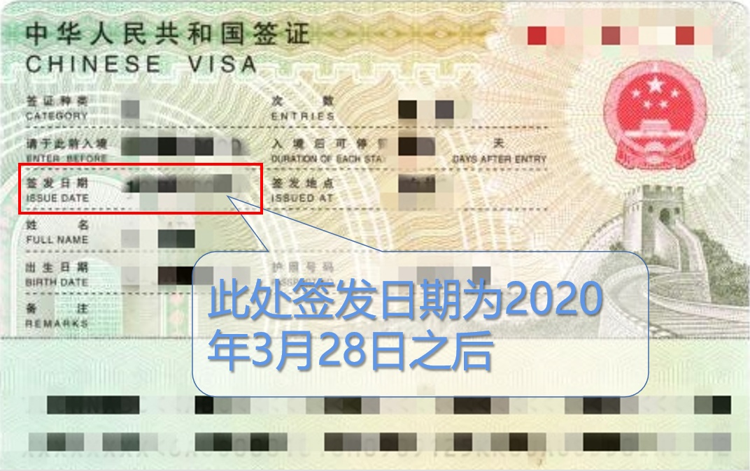 只要所持的中国签证类型符合上述四种中的任意一种(以“种类”/“签证种类”项目内标注为准),不受签发时间限制,即使是3月28日之前签发的签证,也可以入境。
