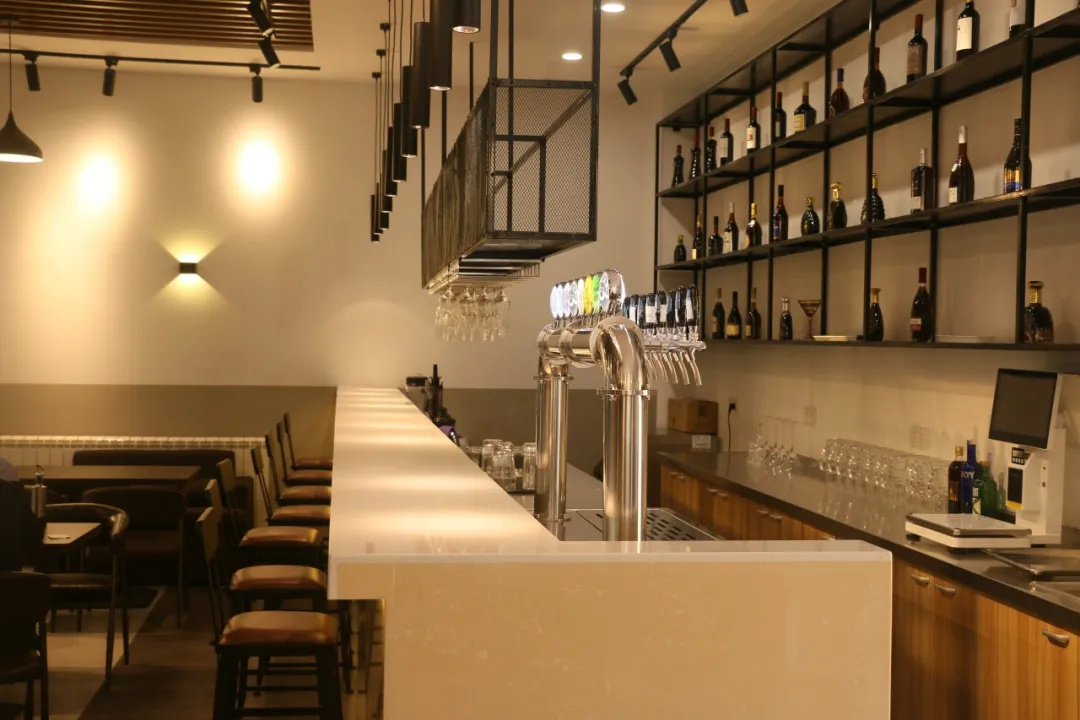 餐厅除了可以吃饭,一到夜晚,下班的蓝领工人就可以来到餐厅吧台区,点一杯饮料聊一下日常,让崩紧了一天的弦得到放松。