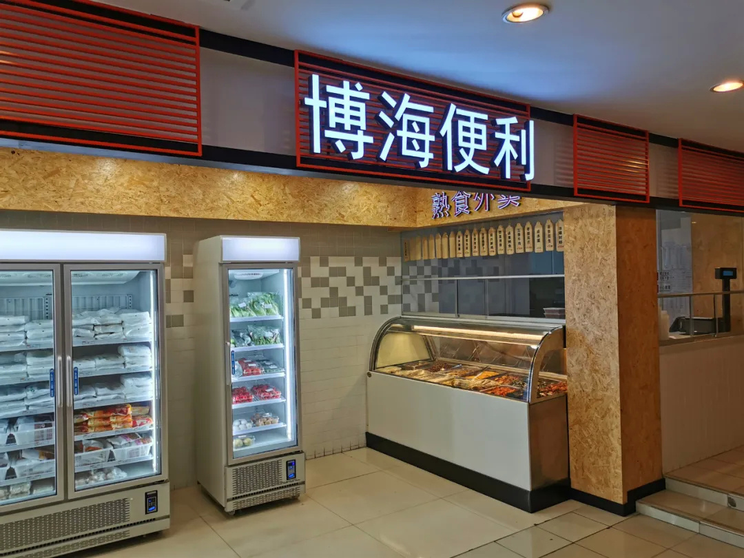 作为一家开在欣达食苑内部的便利店,博海便利为市民提供成品、半成品以及由基地种植的新鲜蔬菜的购买服务,其中成品约有30道菜,半成品约50道菜。