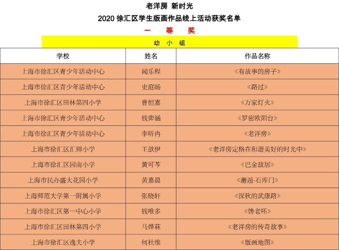 近日,上海市徐汇区青少年活动中心开展了“老洋房 新时光”2020徐汇区学生版画作品线上活动。活动共收到全市中小幼120余幅版画作品,经过专家的评审,共评选出一等奖20幅,二等奖29幅,三等奖38幅。(获奖名单附后)