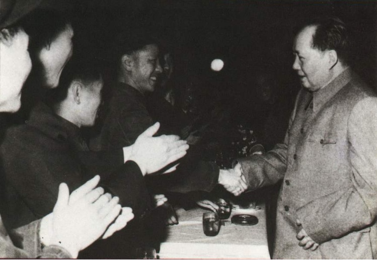 1961年5月1日,中共中央主席毛泽东在上海电机厂与上海市劳动模范、科技人员和闵行区的干部、工人代表欢度国际劳动节,激励闵行区人民独立自主、自力更生、艰苦创业、战胜困难的决心。