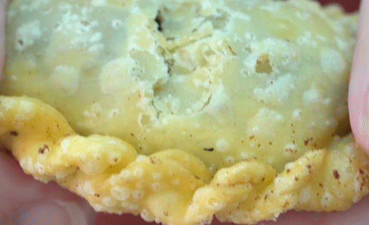 “一方老土灶,一口大土锅”。点火,开灶!金黄色的酥皮,包着香气四溢的草头。刚刚出锅的草头干饺,极其诱人。