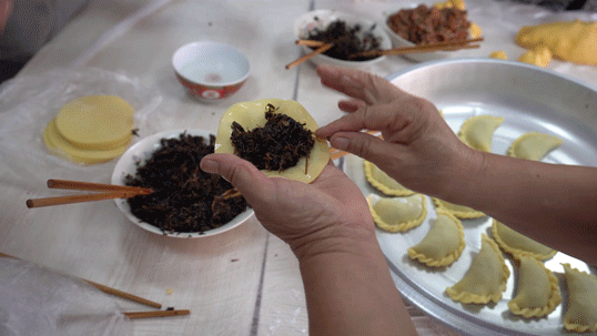 包草头干饺又岂能少了本地阿姨的熟练手法。据说,草头干饺的样子也大有讲究,饺子边为颗粒饱满,麦穗形状的花纹,象征着五谷丰登。