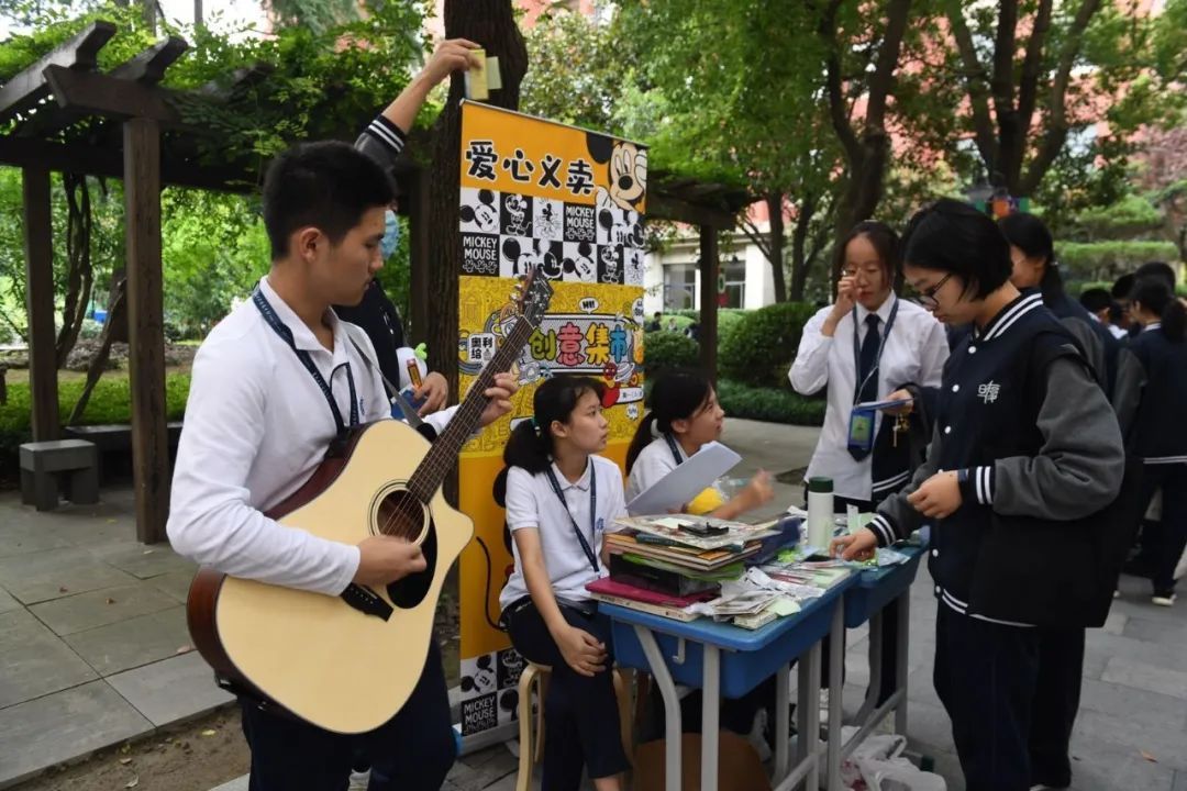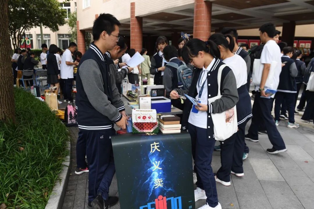 26日上午,庄重的升旗仪式传递着复旦附中师生们“从心连广宇 永志家国梦”的信念。随后,校庆嘉年华缤纷开场。操场上,中国风舞蹈、配乐诗朗诵和藏族歌舞先后登场;师生们在介绍书籍、艺术品的交流中,在拍卖手工作品的过程中,分享学习生活的点滴,发掘生活中的美和诗意。
