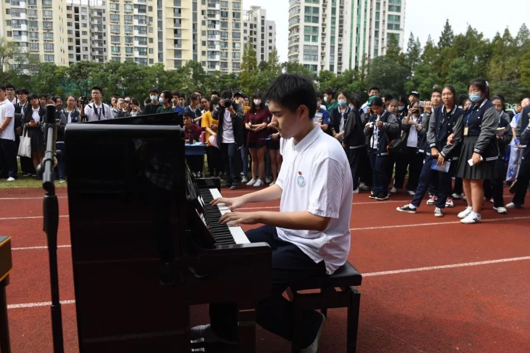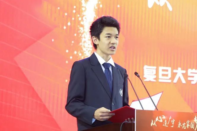 “回望身后那一片土地上留下的,是坚实的脚印;抬眼望去,前方是自由而辽阔的舞台;远方是美好而光明的未来。”学生代表、高三学生金彩分享了在复旦附中学习生活的经历和感悟。她说,在这片校园度过高中三年的每一位附中人,都在见证附中的成长,而同时,附中也在见证着附中人的成长。“高三的我们已不知不觉即将步入成年人的角色之中,而附中带给我们的远远不止是丰富的学科知识,更有着对生活积极探索的精神和家国情怀。”