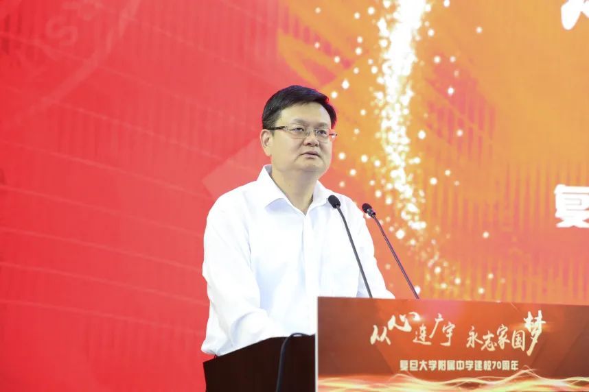 薛侃在致辞中指出,70年来,复旦附中始终秉持“团结、服务、牺牲”的复旦精神,勇立潮头,高歌奋进,培养了一批批素质全面、面向未来、面向世界的卓越人才,为杨浦经济社会发展贡献智慧和力量。他强调,希望学校始终坚持改革精神,在创新拔尖人才培养、高水平师资建设方面出经验、出成果;更好发挥复旦的品牌和教学优势,努力打通基础教育联动高校发展的桥梁,成为创新杨浦在教育领域的“孵化器”和“大本营”,杨浦也将始终坚持把教育放在优先发展的战略位置,一如既往地为复旦附中等学校提供最大的支持,开放更多优质资源、创新多元合作形式、助力办学能级提升、努力实现校区共赢。