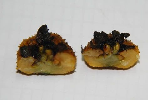 刺梨,单瓣缫丝花的果实,呈扁球形或圆锥形,直径4cm左右,黄褐色,密被针刺;先端有黄褐色宿存的花萼5瓣,亦有针刺。剖开果实,果肉黄白色;种子较多,着生于萼筒基部凸起的花托上,卵圆形。