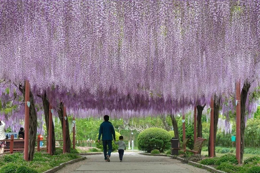 之前,紫藤园所在的区域曾是一片荒芜之地。从“滚地龙”到“网红”景点,20多年来,紫藤园经历了层层蜕变。一路走红的背后,离不开“嘉定紫藤之父”藤本道生的付出,也折射出嘉定居住环境的改善和城市生活品质的不断提升。
