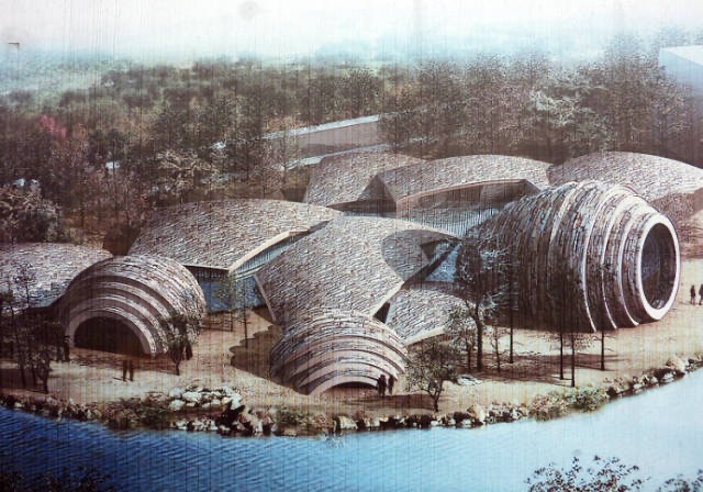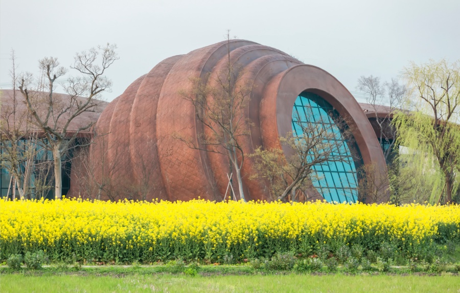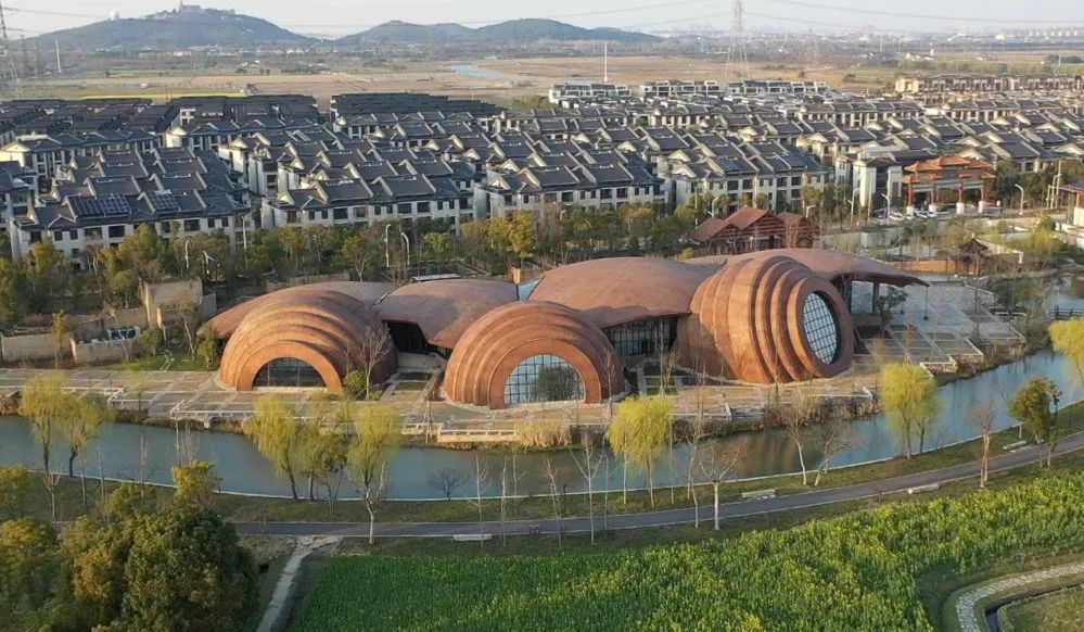 考古遗址展示馆整个建筑的设计灵感来自于考古发现的陶罐,半埋在泥土中的样子,由三个罐体和五片陶片构成,其外表采用了新型材料和工艺,形象生动逼真。如此独特的造型,将成为又一个新的网红打卡点。