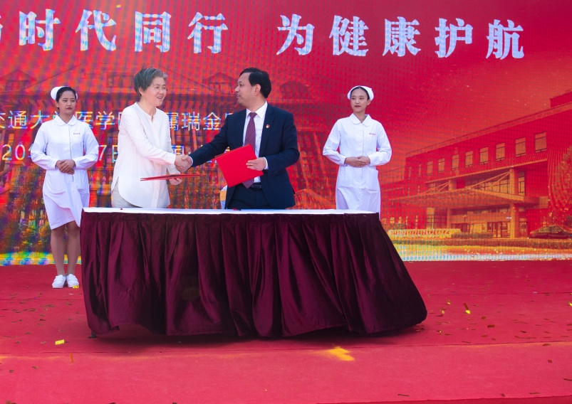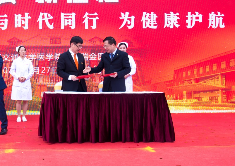 上海市副市长宗明,上海交通大学校长林忠钦,上海市卫健委党组书记章雄,嘉定区委书记陆方舟,嘉定区区长高香,上海申康医院发展中心党委书记、主任王兴鹏,上海交通大学医学院党委书记范先群,上海市发改委副主任陈石燕,上海市医保局副局长罗惠民,嘉定区副区长王浩,上海申康医院发展中心副主任丁美坚,中国太平洋保险(集团)股份有限公司董事长孔庆伟、副总裁马欣,上海联影医疗科技有限公司联席总裁张强,上海商汤智能科技有限公司首席执行官徐立等出席仪式,瑞金医院党委书记瞿介明主持仪式。