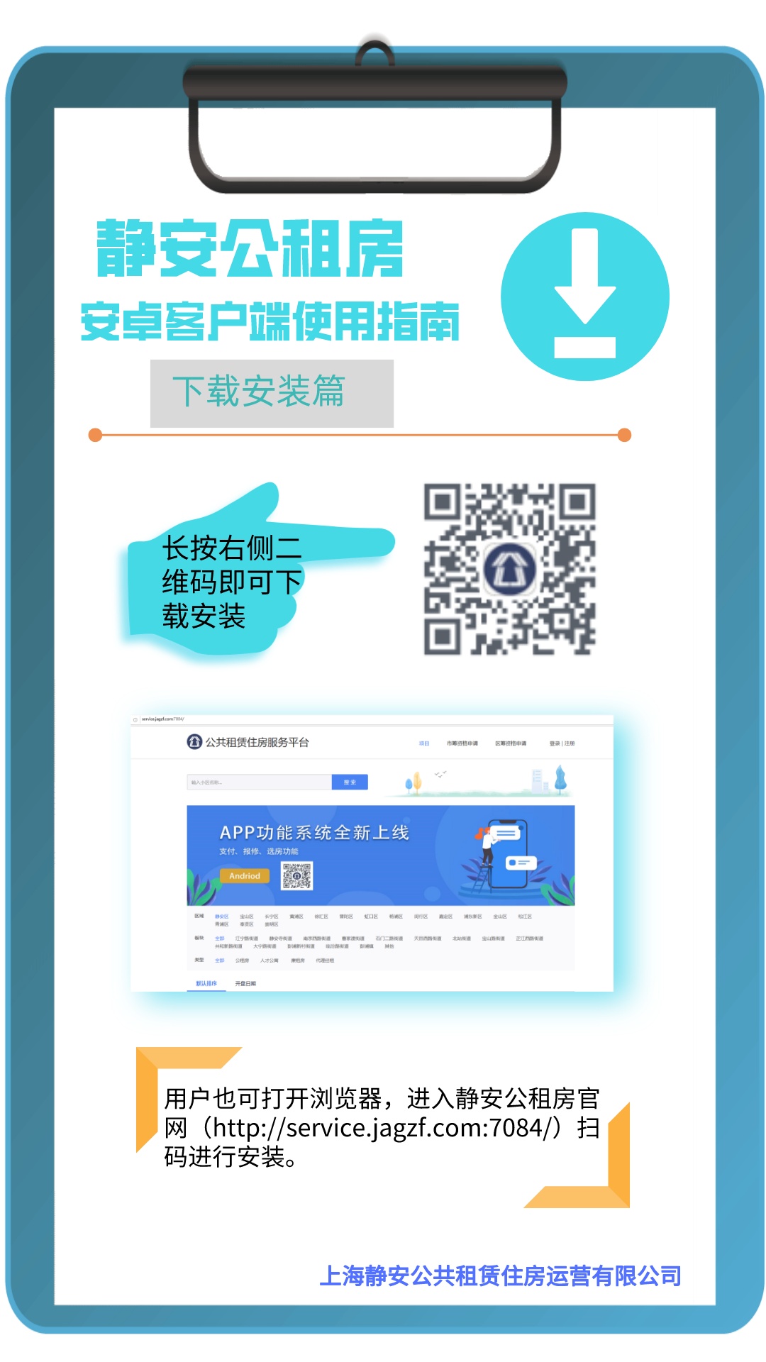 为加快公租房高质量发展,结合新冠疫情防控要求,进一步深化静安公租房智能化建设进程,为租户提供更高效、更便捷的公租房租赁服务,静安公租房APP客户端(安卓版)于本月正式上线啦!
