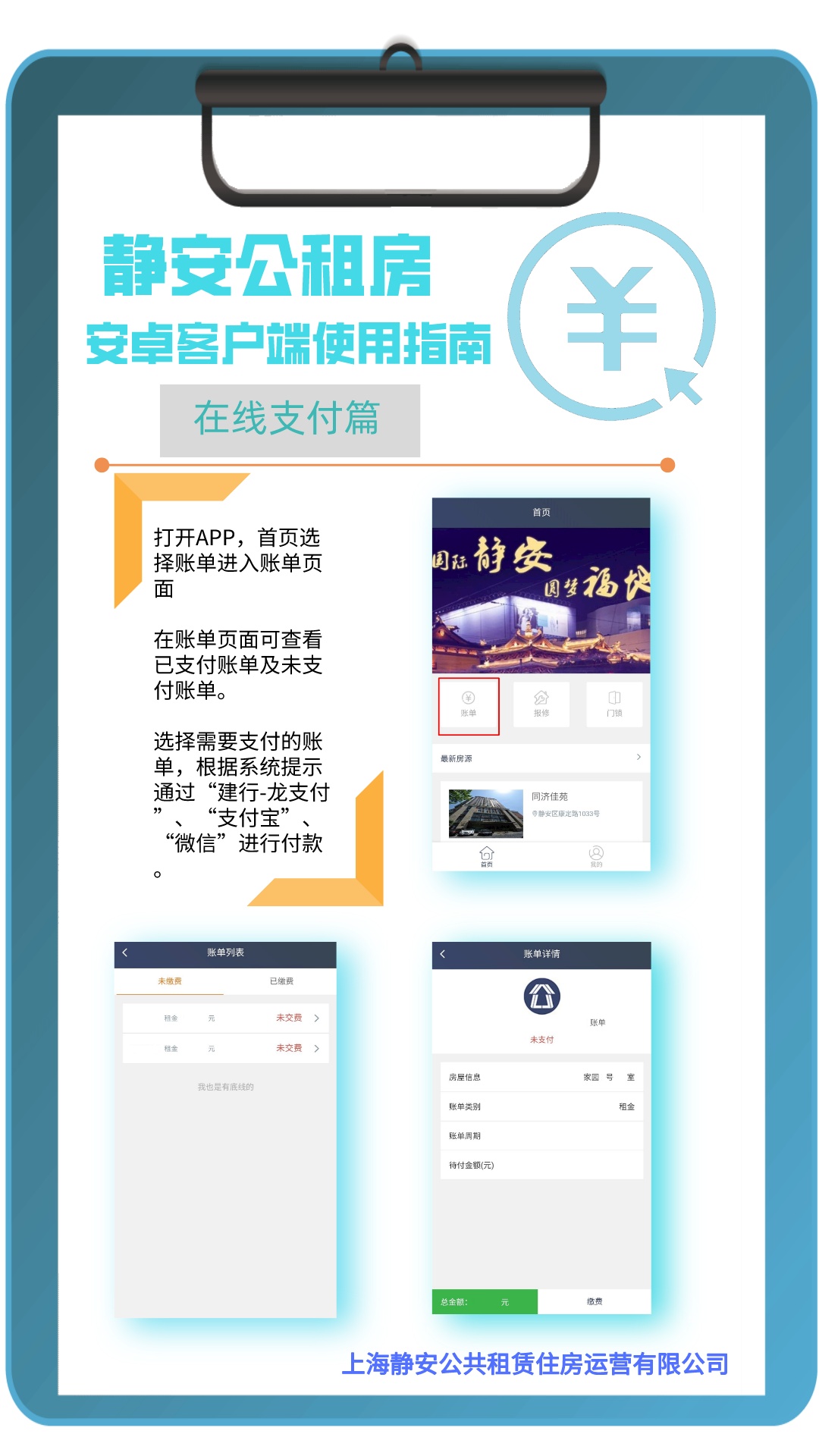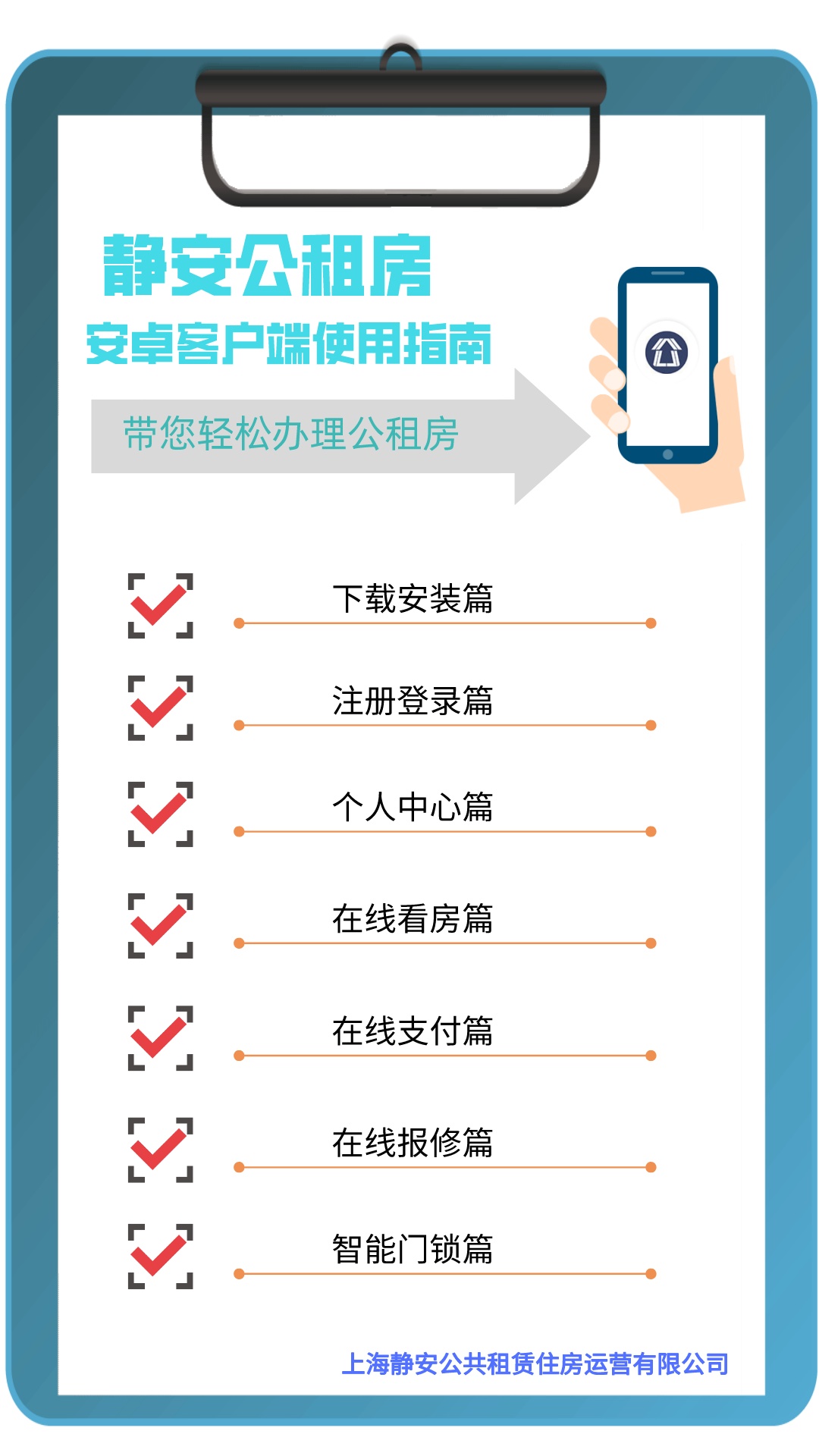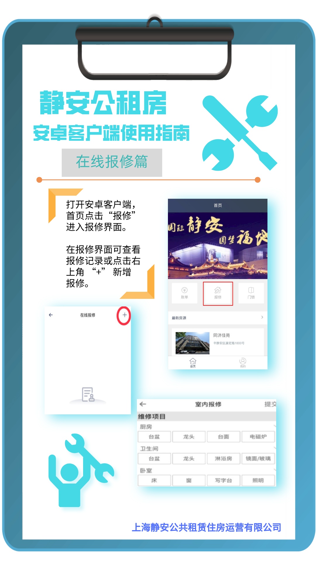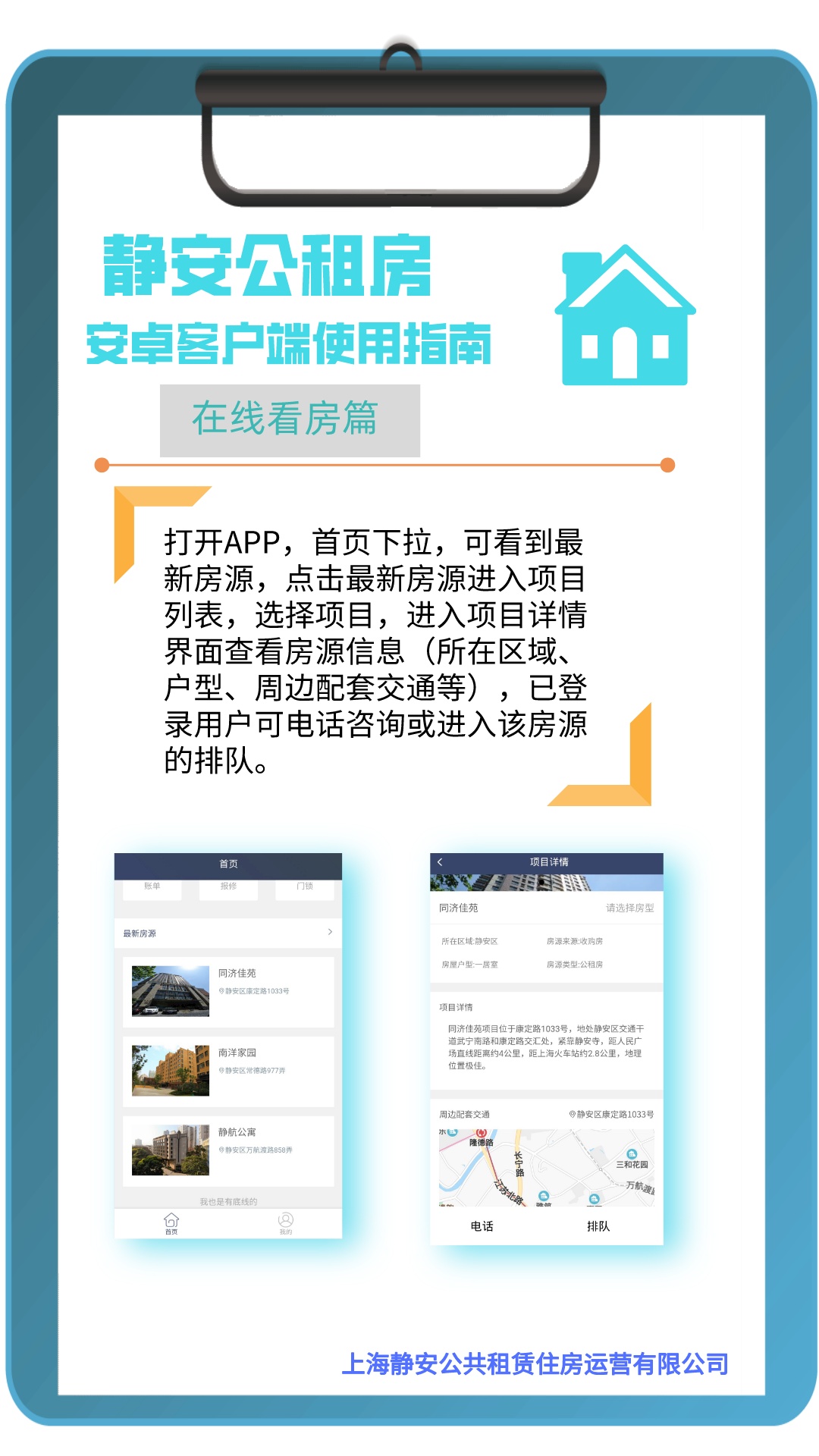 “静安公租房”APP客户端,包含“查看申请进度”“在线预约看房”“在线报修”及“在线支付”等功能,赶紧来看看使用指南吧!