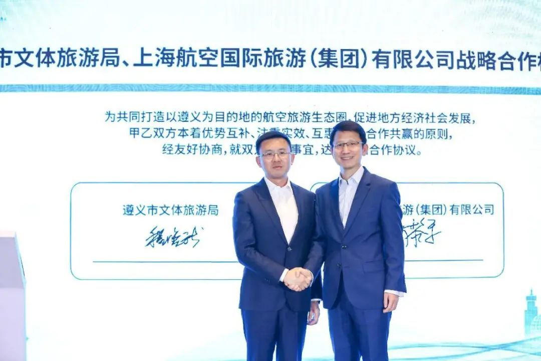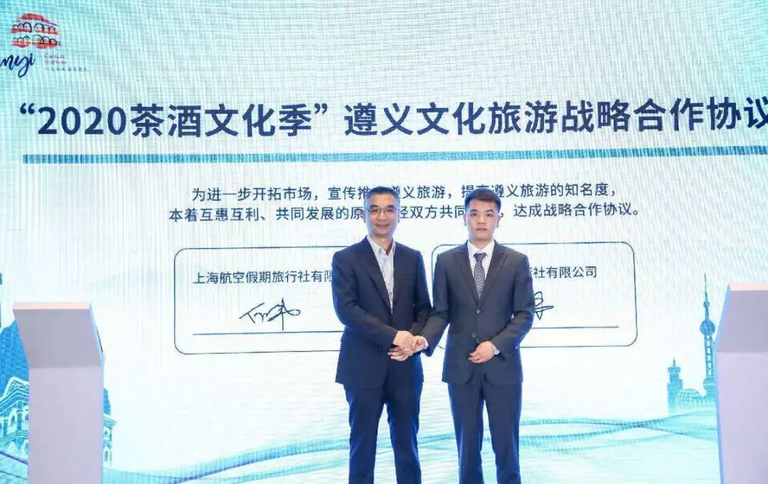 活动现场,遵义文体旅游局与上航旅游集团签订了战略合作协议,遵义旅行社有限公司与上海航空假期旅行社有限公司签署了引客入遵项目合作意向书。未来合作双方将共同探索新时代背景下全域旅游和业态融合创新下的“文旅康养发展”新模式。