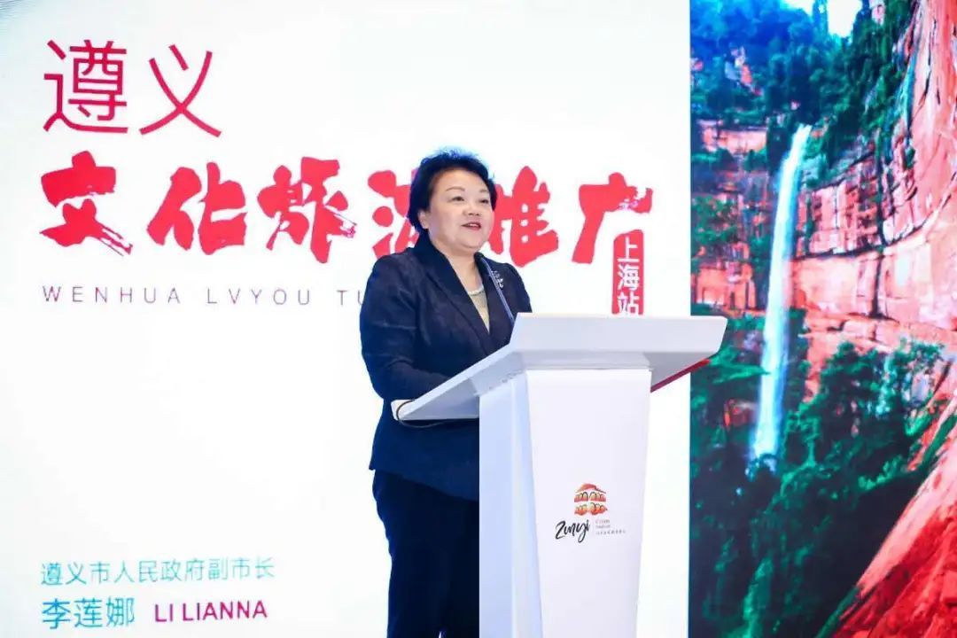 遵义市副市长李莲娜在推介致辞中对遵义丰富的旅游资源和多元的旅游产品进行了生动细致的介绍,并向上海及全国旅游行业同仁发出邀请,欢迎四海宾朋来到遵义观光旅游、投资兴业、共同发展。